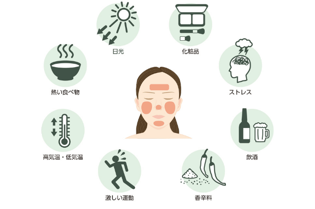 日常生活の中には、酒さを悪化させる要因が多く潜んでいます。 これらを特定し、避けることが治療の第一歩です。
