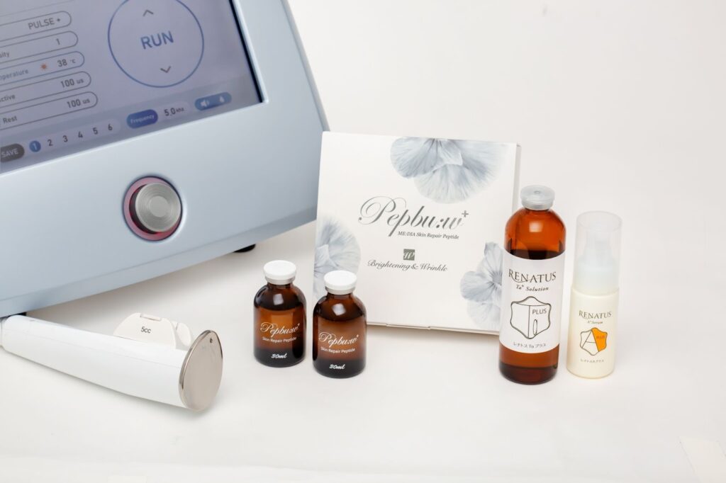 • エレクトロポレーション技術:短い電気パルスを流すことで、細胞膜に一時的な隙間(電子孔)を形成します 。この「通り道」ができることで、分子の大きな美容成分も、針を使わずに真皮層まで大量に浸透させることが可能になります 。
