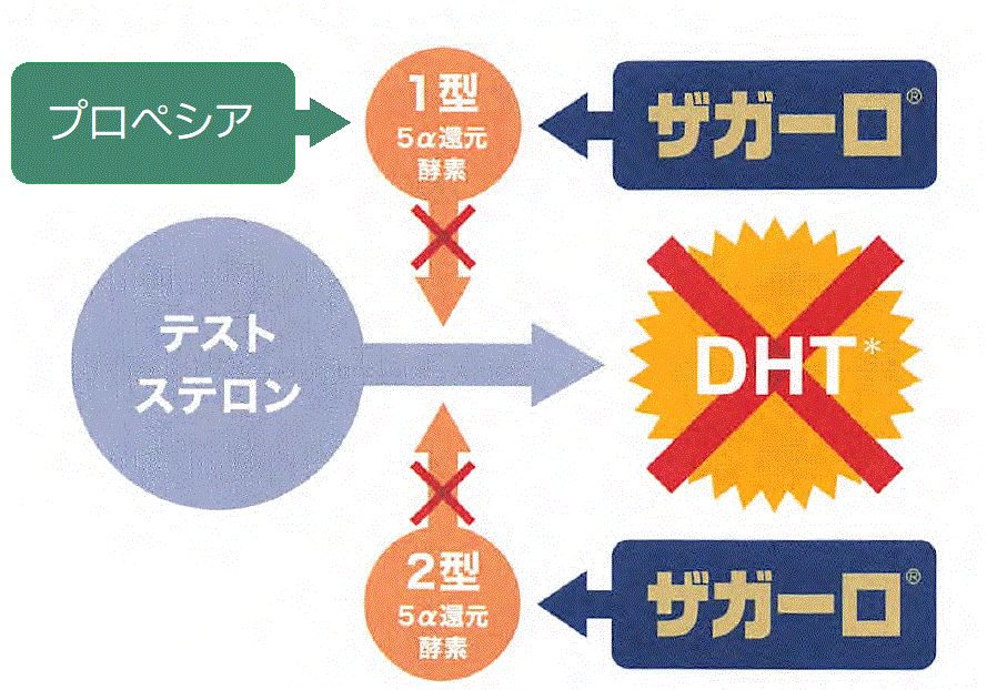 - フィナステリド(プロペシア): 2型5αリダクターゼを阻害 。