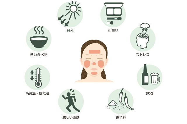 日常生活の中には、酒さを悪化させる要因が多く潜んでいます。 これらを特定し、避けることが治療の第一歩です。
